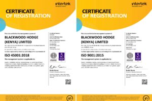 Blackwood Hodge (Kenya) Ltd Achieved Certifications